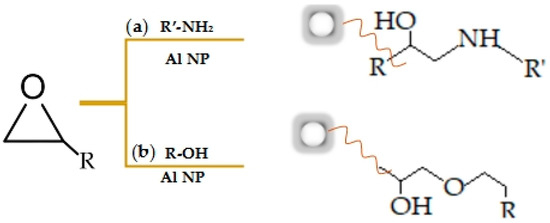 Possible reactions of incorporation of Al NP (a) into the added hardener (amine) and (b) directly in the epoxy matrix.