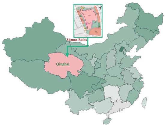 Bone cultural relics, an important type of cultural relic unearthed in archaeological excavations, have been valuable in the disciplines of archeology, physical human osteology, and paleopathology [1,2,3]. The historical information that they provide is used to reveal and explore the behavior, production activities, and production relations of ancient humans, which increases the accuracy of reconstructions of the system, politics, economy, and life at that time. The Shenna ruins (Figure 1) cover a total area of about 100,000 square meters and are located in the north of Xiaoqiao Village, Chengbei District, Xining City, Qinghai Province. In 2006, the State Council announced them as the sixth batch of national key cultural relic protection units. Many types of artifacts have been unearthed at the site. Among them, the spine, chest, and pelvis bones of two humans were unearthed. However, they were seriously decayed and their preservation status was poor, so protective restoration measures needed to be taken as soon as possible [4]. In addition, the reconstruction of the conservation hall requires the temporary backfilling of the archaeological site. On this basis, information about the rescue extraction and the protection of the original site of the human bone cultural relics are required.