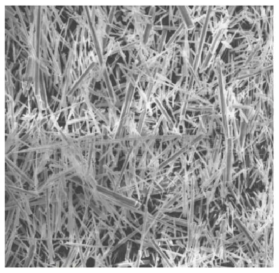 Calcium sulfate whisker is a fibrous single crystal, white and fluffy, with high strength, high modulus, good durability, resistance to high temperature, and other excellent properties [6]. The published literature has shown that the incorporation of calcium sulfate whisker into asphalt mixture as a modifier can improve the high temperature performance of asphalt mixture, but the influence on the low temperature performance is different. Liqin Li et al. found that the high temperature performance of asphalt slurry was improved with the increase of calcium sulfate whisker content within a certain dosage level, while the low temperature performance decreased with the increase of whisker content [7]. Daijun Li found that the incorporation of calcium sulfate whisker could improve the high temperature stability of asphalt mixture, but the long-term high temperature environment would attenuate the physical properties of calcium sulfate whisker [8]. Xiushan Wang proposed that adding calcium sulfate whisker into asphalt mixture can improve its high temperature stability, water stability, and road performance [9]. Tengbin Huang found that within a certain dosage range, calcium sulfate whisker can improve the high temperature performance, low temperature performance, and water stability of asphalt mixture [10].