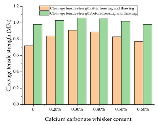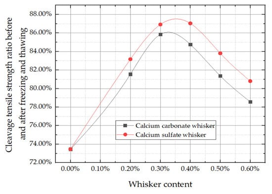 Freeze-thaw splitting test results of calcium carbonate whisker asphalt mixture.