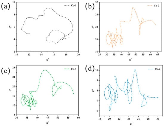Cole-Cole curves of (a) Co-1, (b) Co-2, (c) Co-3, (d) Co-4.