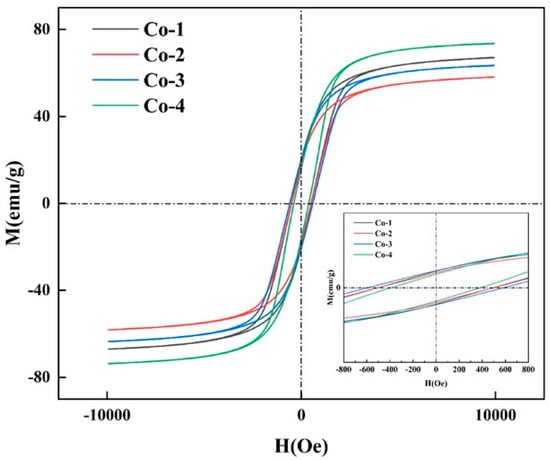 Magnetic hysteresis loops of Co-1, Co-2, Co-3, and Co-4.