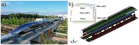 (a) High-speed maglev train, (b) Schematic diagram of carbon fiber train body structure.