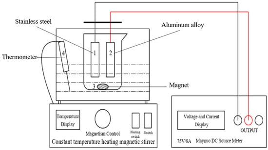 Before induction brazing, all the aluminum alloy samples were anodized after being ground, polished, alkali washed, and pickled. The anodization processes were carried out under a solution temperature of 10–15 °C and a voltage of 20 V for 20 min. Figure 4 shows a schematic of the anodization device, and Table 2 lists the composition of the anodizing solution.