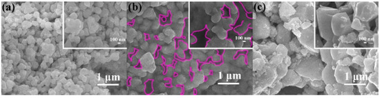 FE-SEM images of LiNi, (a) citric acid (LiNi-C); (b) L-ascorbic acid (LiNi-A); and (c) sorbitol (LiNi-S) [30].