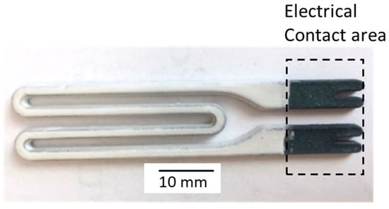 The sintering steps are as follows: (1) heat the coated parts at 5 °C/min to 600 °C in air; (2) hold the coated part for 1 h at 600 °C to burn off the polymer processing aids; (3) ramp up to the sintering temperature (1525 °C) at 5 °C/min in air; (4) hold the coated part for 3 h at 1525 °C; (5) ramp down to room temperature at 20 °C/min. The drying and sintering steps were conducted after each coating layer (bond coat and top coat) was applied. The polymer that masked the electrical contact area burned off during sintering.