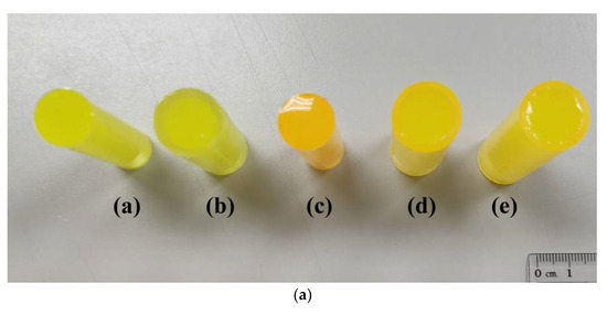 Photographs of (a) all the cylindrical rod samples and (b) cylindrical rod containing yellow phosphor for laser-driven white lighting in this study.