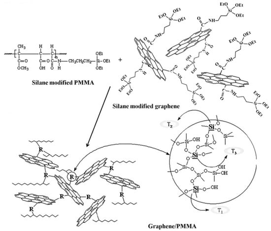 Schematic showing the use of the sol–gel method to prepare functionalized graphene/PMMA composites. Reprinted with permission from [86]. 2012, Mater. Chem. Phys.