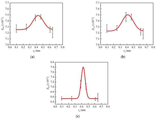 Relationship between energy values of the sub-images obtained after one-level wavelet transform and the corrosion depths: (a) EH1-tw, (b) EV1-tw, (c) ED1-tw.