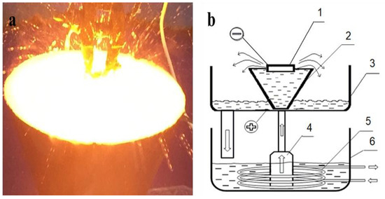 - Tyurin, Y.N.; Pogrebnjak, A.D. Electric heating using a liquid electrode. Surf. Coat. Technol. 2001, 142–144, 293–299. [Google Scholar] [CrossRef]