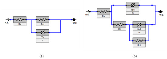 Equivalent Circuit Models for EIS data fitting (a) Without Inhibitor (b) With Inhibitor.
