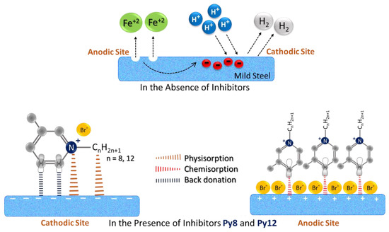 The synthesis of inhibitors N-(n-octyl)-3-methylpyridinium bromide (Py8) and N-(n-dodecyl)-3-methylpyridinium bromide (Py12) is already reported by our group [33,34], and the chemical structures are given in Figure 1.