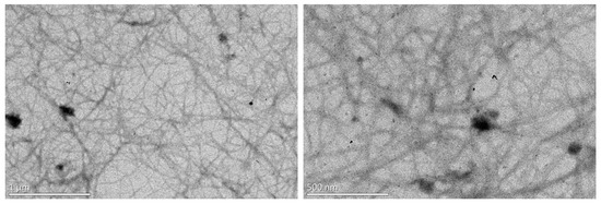 Figure 9 shows the transmission electron microscopy images of CNMs prepared from 150 μm particle size of Neosinocalamus affinis powder using bio-enzyme B. Figure 9 shows that the CNMs prepared in this study were in the form of fibrous bundles and cross-twisted with each other. It is due to the amorphous region in the internal structure of cellulose, which causes CNMs to exhibit aggregation [49]. Figure 9 shows that the CNMs prepared in this study are cellulose nanofilaments (CNFs).