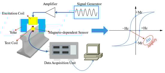 Meanwhile, MBN rail stresses are related to temperature changes. Therefore, the effects of temperature changes should be considered in the MBN detection method [108]. The integration of magneto-acoustic emission and MBN techniques for detecting stresses in ferromagnetic materials such as rails has already yielded good results.