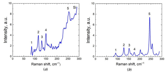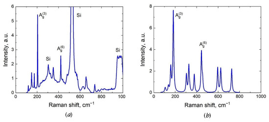 | Phase of Ga2O3 | Peaks | Freq., cm−1, Exp., This Work | Freq., cm−1, Theor., This Work | Freq., cm−1, Exp., [6,23,25] |