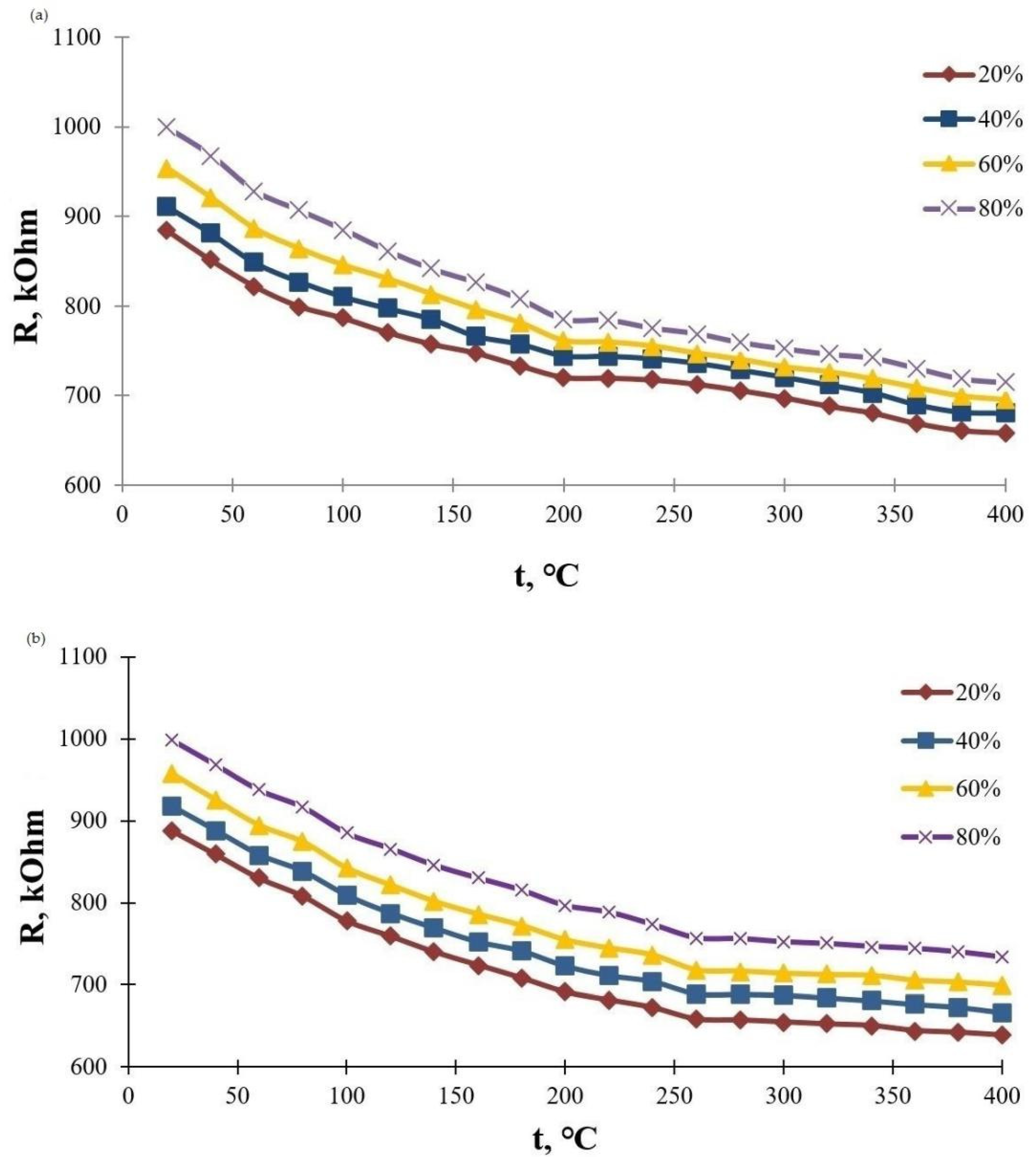 16], it was shown that layers grown under the influence of oxide chemostimulants are characterized by the reproducible temperature dependence of the resistance, thermally stable and are of practical interest for use as the sensitive elements of semiconductor gas sensors.