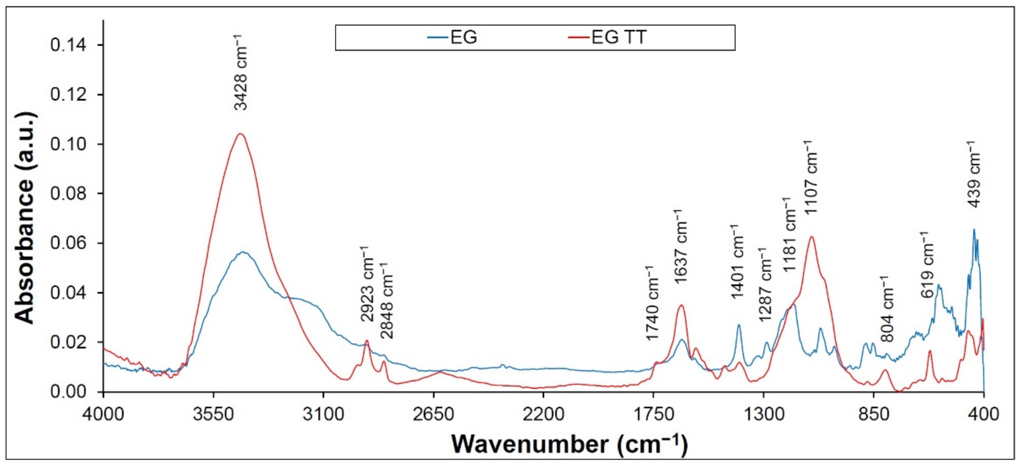 - Polovka, M.; Polovková, J.; Vizárová, K.; Kirschnerová, S.; Bieliková, L.; Vrška, M. The application of FTIR spectroscopy on characterization of paper samples, modified by Bookkeeper process. Vib. Spectrosc. 2006, 41, 112–117. [Google Scholar] [CrossRef]
