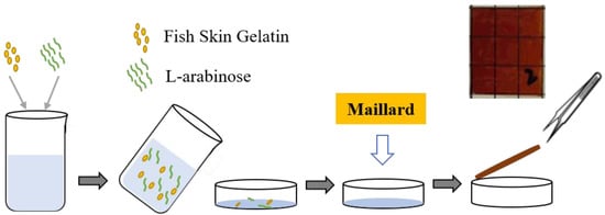 Fish skin gelatin (type A; bloom: 250 g) was obtained from Yonghe Co., Ltd. (Zhengzhou, China) and L-arabinose from Shandong Longli Biotechnology Co., Ltd. (Jinan, China). Glycerin, sorbitol, trichloromethane, glacial acetic acid, potassium iodide, and sodium thiosulfate (analytical pure) were purchased from Tianjin Kermio Chemical Reagent Co., Ltd. (Tianjin, China) All other chemicals were analytical reagents.