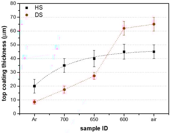 Evolution of the thickness of the top coating with the annealing atmosphere.