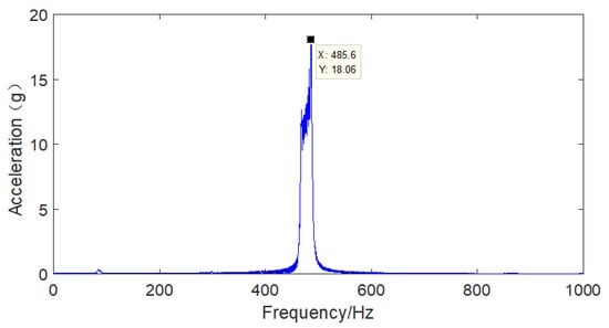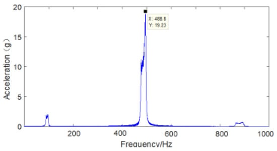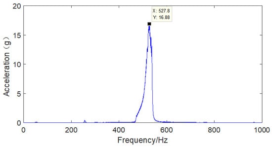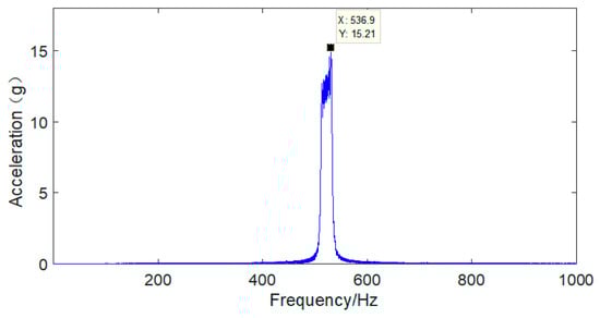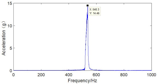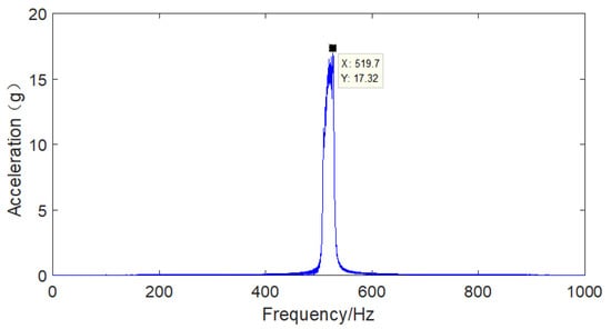 The vibration response of the hard coating material, coating thickness and clamp material of the aviation hydraulic clamp-piping system was analyzed in a nonresonant state under basic excitation. The sampling frequency was set to 5120, the frequency sweep range was 150 Hz-1500 Hz, and the frequency sweep time was 120 s. The results for the frequency sweep vibration response of the aviation hydraulic clamp-piping system before and after application of the hard coating are shown in Figure 21, Figure 22, Figure 23, Figure 24, Figure 25 and Figure 26.