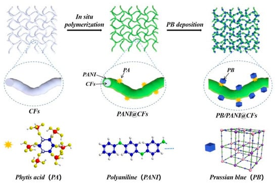 2.2.3. Preparation of PB/PANI@CFs Composite