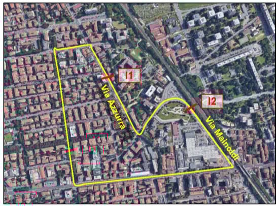 Crossing “I1” along Azzurra street (on the left) and crossing “I2” along Mainoldi street (on the right).