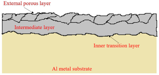 Schematic of a cross-sectional micrograph of PEO coating on the Al substrate.