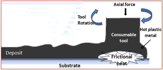 Schematic presentation of friction surfacing process. Reproduced with permission from []. Copyright Elsevier, 2014.