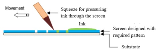 In this work, screen printing was performed by employing a commercial manual screen-printing method. The pressure on the screen was applied manually in order to squeeze paste through the mesh and to deposit it on the given substrate.