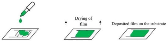 In this method, 10 µL drops of dispersion were deposited on the substrate. After full coverage of the desired area of substrate by the dispersion drops, it was placed in an oven for drying at 60 °C for 2 h as shown in Figure 11.
