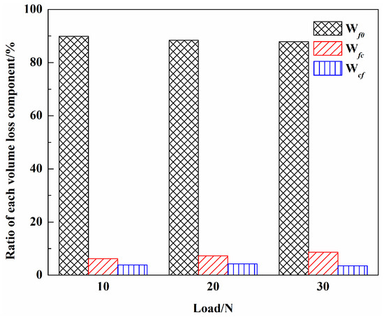 Proportion of each volume loss component of the TCN coating under different load conditions.