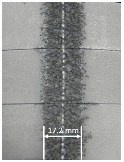 Example of traces of arc spots on graphite cathode surface with an arc current of 1600 A. The calculated lateral arc spot movement length is 17.2 mm.