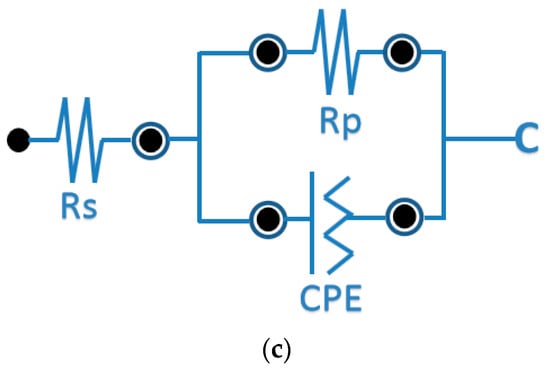 Impedance curve of the coating layer and equivalent electrical circuit.(a) different amounts of complexing agent content; (b) different amounts of cerium nitrate content; (c) equivalent electrical circuit.