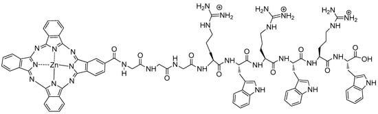 Photodynamic antimicrobial chemotherapy (PACT) is another important attractive modality to treat localized microbial infections. PACT, with a unique mode of action, has received a great deal of attention as a promising approach to eradicate drug-resistant bacteria. It is based on the combined effect of non-toxic substances, such as photosensitizers (PSs), light and cytotoxic reactive oxygen species (ROS), to trigger cell death []. PACT uses various photosensitizers, and, out of these, zinc phthalocyanine (ZnPc)-based PSs are of particular interest for their unique physico-chemical properties [,]. Antimicrobial photodynamic therapy typically correlates with the lipophilicity and high propensity of PSs to bind and damage the biological membrane []. Many studies have reported utilizing PACT to target the bacterial membrane using cationic PSs and cell-targeting peptides [].