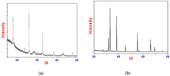 For the produced determination, the XRD patterns of the manganese oxide NP and cadmium oxide NP samples were obtained (Figure 7). The outstanding peaks were used to calculate the grain size using the Scherrer equation. The spectra of crude MnO and CdO nanoparticles showing the diffraction peaks at 2θ values are tabulated in Table 6; Joint Committee on Powder Diffraction Standards (JCPDS) of MnO and CdO card no. 057-1088 and 065-2908, respectively.
