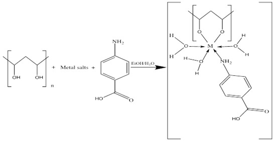 Complex formation of PVA and P–ABA was carried out with the following (Scheme 1), and the suggestion of a coordinated structure around the manganese (II) or cadmium (II) in their complexes is illustrated in Figure 1.