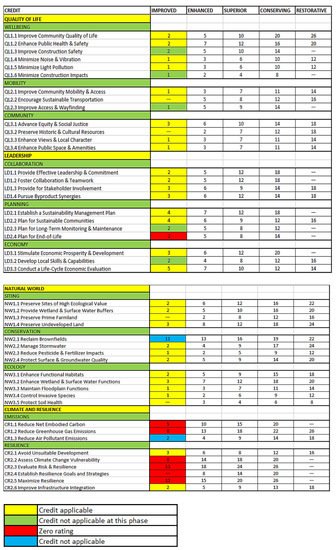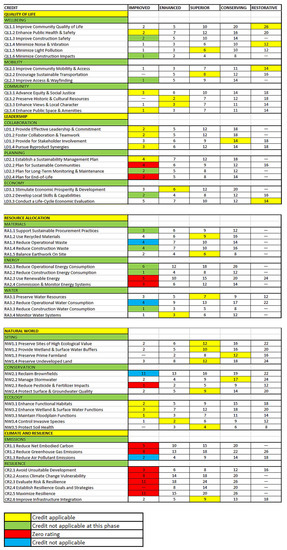 Blue: the credit is inconsistent with the project and so it is not considered in the total score.