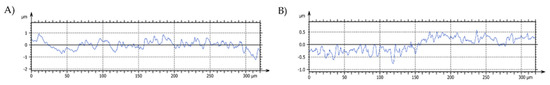 Representative profile cut (vertical) including waviness for Zirconia (A,B) Bio-HPP samples.