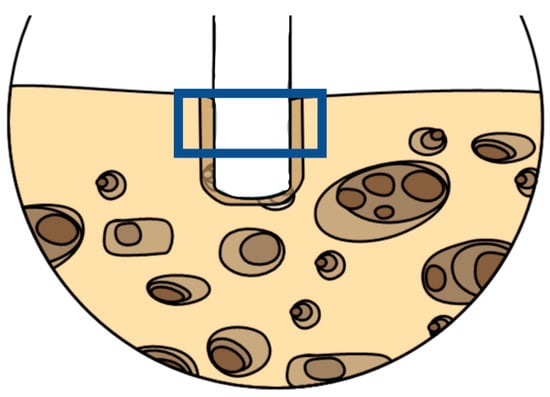 Representative scheme of the chosen area observed at the SEM-EDX to spot the metal particles debris. Picture realized using Mindthegraph® infograph software (https://mindthegraph.com/, accessed on 1 February 2022).
