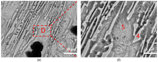 In comparison, there were spherical graphite particles precipitated in the bonding zone as shown in Figure 7d. Besides spherical graphite, there was a lot of strip cementite perpendicular to the CGI substrate and along the temperature gradient directions as seen in Figure 7d–f. The multiple cladding processing reheated the deposited layer and accelerated the partial decomposition of cementite, which would lead to the decarburization of cementite and form free carbon in the form of spherical graphite.