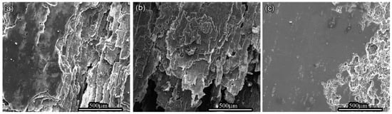 OM and SEM images exhibit the cross-section and surface corrosion morphology of every sample, after immersing in EXCO solution for 48 h, as shown in Figure 1 and Figure 2. Exfoliation in every sample exhibits obvious intergranular corrosion. Several deep local cavities appear in these samples, and many corroded areas are apparent with extensive intergranular penetration and fall-out. Figure 1 clearly shows that the penetrated thickness of the peak aged sample is deepest among the three samples, and the attack path is similar along the grain boundary. There are obvious lamellar peeling products in the three samples, and in every sample, the penetrated area is not uniform, as shown in Figure 2.