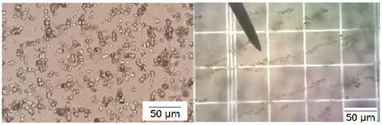 Two types of nanoparticles were inserted as one of the layers within the microcapsule’s walls: Fe2O3, ferric oxide, having Ø 50 nm and superparamagnetic Fe3O4 having Ø 15 nm (Figure 2).