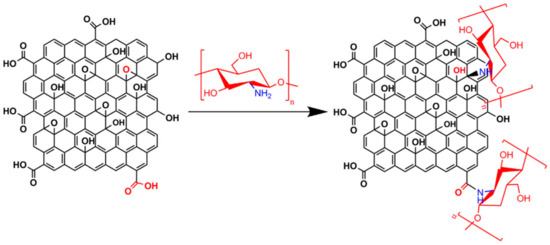The schematic illustration of the modification of GO nanosheets with chitosan. Reprinted with permission from [41].