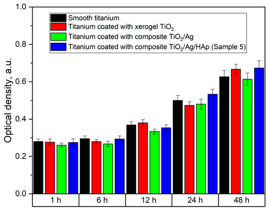 - Mai, L.; Wang, D.; Zhang, S.; Xie, Y.; Huang, C.; Zhang, Z. Synthesis and bactericidal ability of Ag/TiO2 composite films deposited on titanium plate. Appl. Surf. Sci. 2010, 257, 974–978. [Google Scholar] [CrossRef]