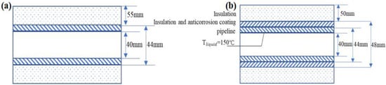 Pipe model (a) without coating and (b) with thermal insulation anticorrosive coating.