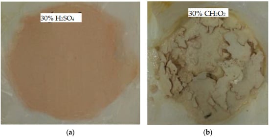 2, when glass flakes, in this case, as a filler, ensured the cohesion of larger pieces of the tested surface; therefore, the surface released from the base in cohesive pieces. It follows that the filler in the glass flakes has a positive influence on the chemical resistance against the tested organic acid.