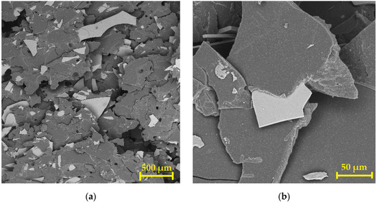 2 also disrupted the structure of the quartz flour particles. By comparing these SEM images, it can be concluded that the coating containing shards from a windshield resists the selected chemically aggressive environment better than the reference coating. The incorporation of glass flakes in the polymer matrix can be seen in