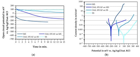 Chicago/Turabian StyleKutschmann, Pia, Maximilian Grimm, Thomas Lindner, Kerstin Raffaela Ernst, Olga Schwabe, Christian Pluta, and Thomas Lampke. 2022. "Comparison of Aqueous and Gelled 3.5% NaCl Electrolytes for Assessing the Corrosion Resistance of Thermal Spray Stainless-Steel Coatings in Electrochemical Corrosion Tests" Coatings 12, no. 3: 344. https://doi.org/10.3390/coatings12030344