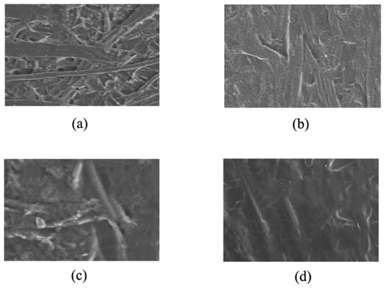 It can be seen from Table 5 that the air permeability of paper decreased significantly with an increase in coating amounts, which indicated that the coatings prepared in this experiment could effectively reduce the air permeability of the paper. When the base paper was coated, the voids on the surface were closed by the coating film, which reduced the air permeability of the paper.