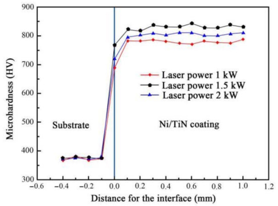 - The Ni/TiN coating deposited at 1 kW had an average microhardness of 768 HV, the lowest of the three coatings, whereas the Ni/TiN coating deposited at 1.5 kW had a maximum average microhardness of 843 HV. However, the Ni/TiN coating processed an average hardness of 808 HV when prefabricated at 2 kW.